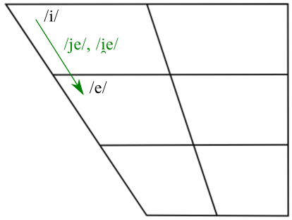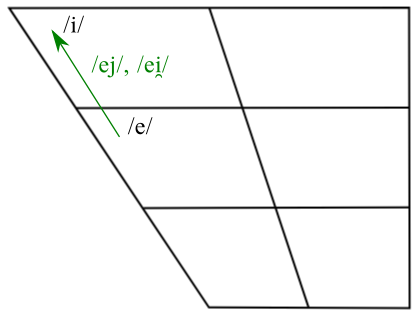Le diagramme montre (pas très clairement à mon avis) que chaque diphtongue de l’espagnol fonctionne dans les deux sens. Je représente /ej/ et /je/ isolément ci-dessous.